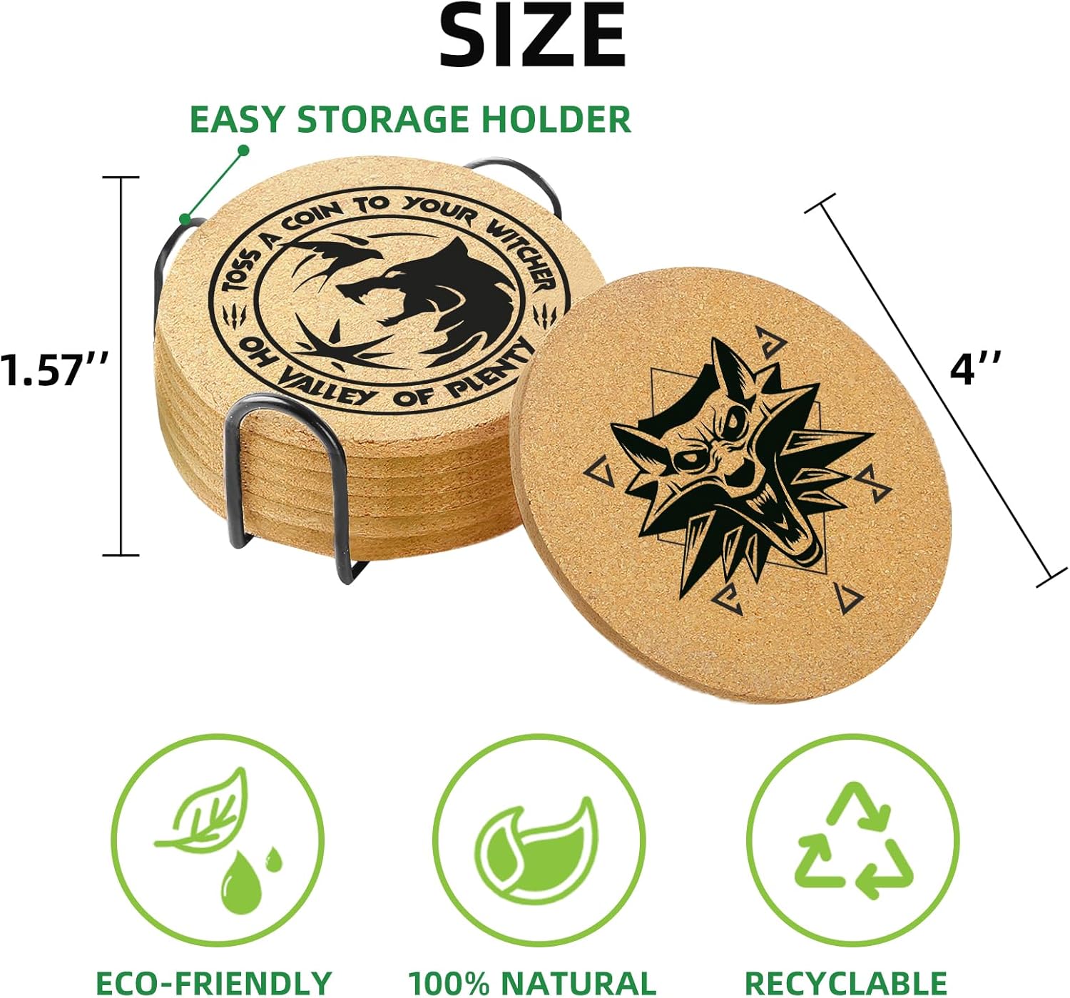 Coasters for Drinks with Holder, Set of 6 Absorbent Cork Wood Coasters CuteCoasters for Drinks with Holder, Set of 6 Absorbent Cork Wood Coasters Cute