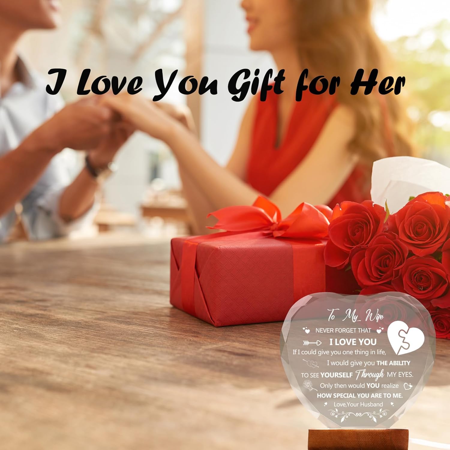 Gift for Wife from Husband: Gift Your Wife with this Heart Crystal Engraved with a Love Letter to Remind Her How Much You Care! Make Her a Big Surprise Gift on Anniversary, Birthday, Thanksgiving, Christmas, and Valentine’s Day or Any Other Occasion.