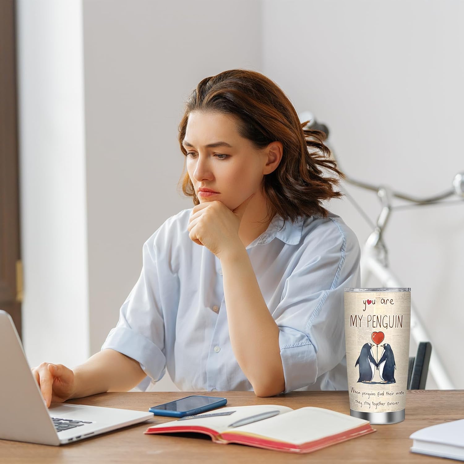 Tumbler Gift for Wife: This cup is a good gift for wife. Every time she uses it, when she sees the romantic penguin couple on the cup, she will think of the sweet and happy memories of you two.