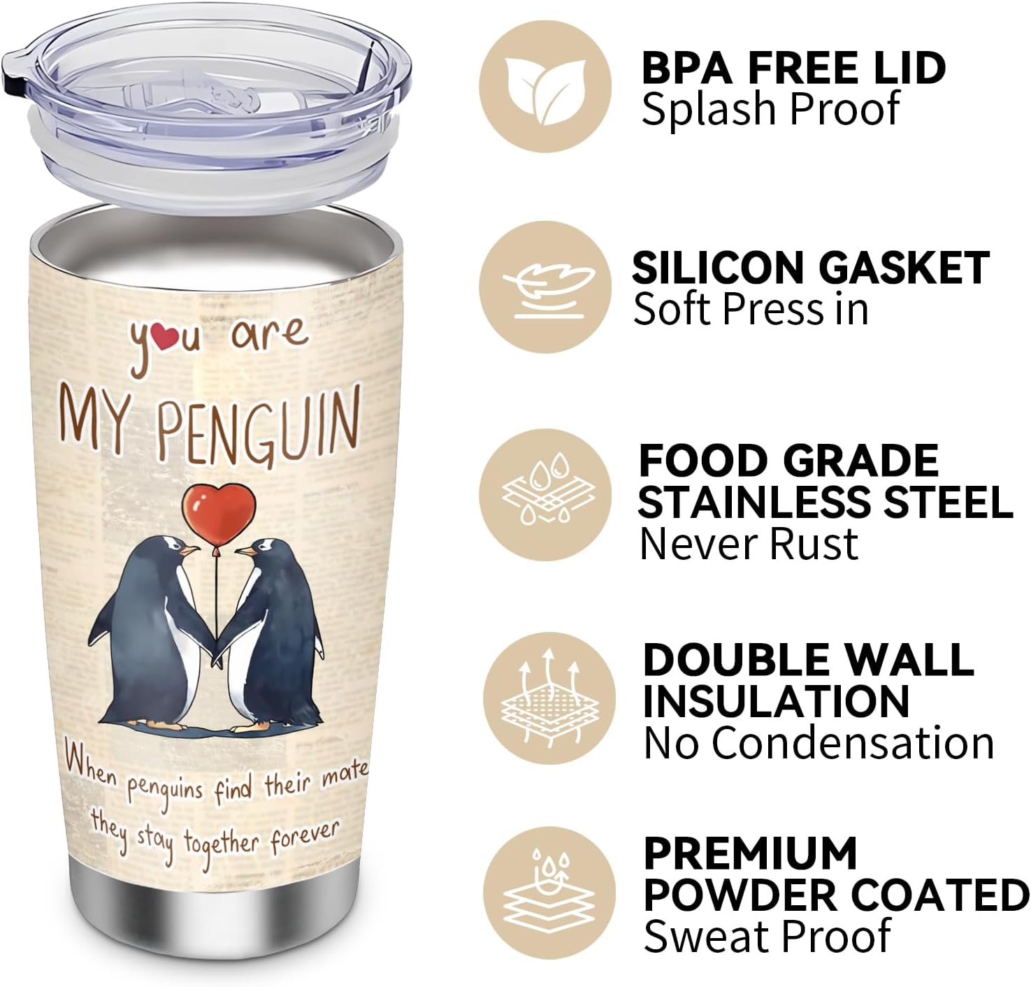Romantic Penguins Elements: This tumbler features a pair of penguins design, with romantic words” you are my penguin, When penguins find their mate they stay together forever.” Perfect gift for her, wife, girlfriend