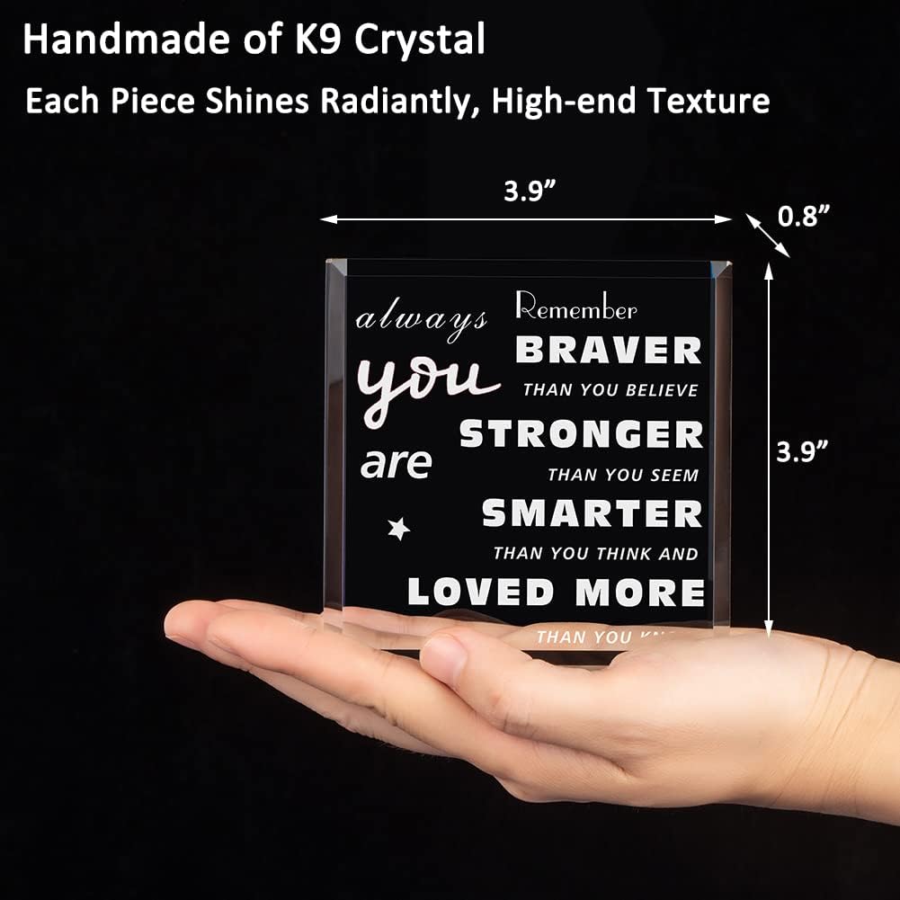 Unique Design Read: “Always Remember You are BRAVER than You Believe, STRONGER than You Seem, SMARTER than You Think and LOVED more than You Know”, Pattern and Words are Laser Engraved into the Crystal Glass, will Never Fade, Long Lasting for Ever