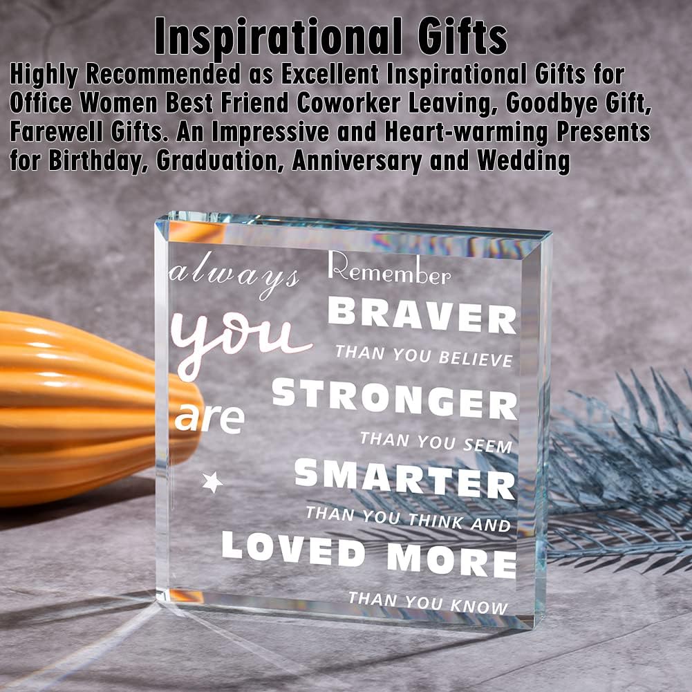 Inspirational Birthday Gifts for Women Positive Quotes Office Desk Decor Crystal Square Plaque Saying Motivational Sign for Men Best Friend Coworker