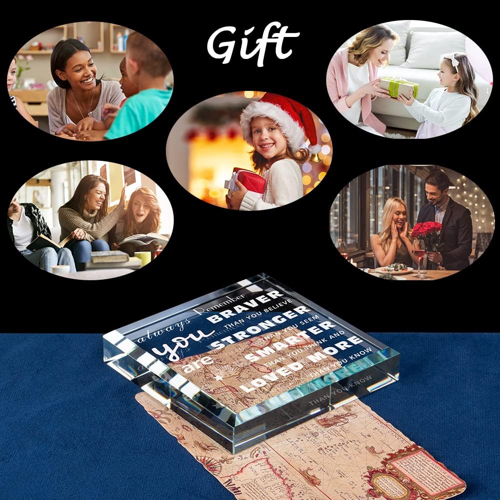Size & Material: 3.9″ x 3.9″ x 0.8″, Made of K9 Crystal, Each Piece Shines Radiantly, High-end Texture, Positive Inspirational Quotes is Laser Engraved in the Crystal, will Lasr for Ever