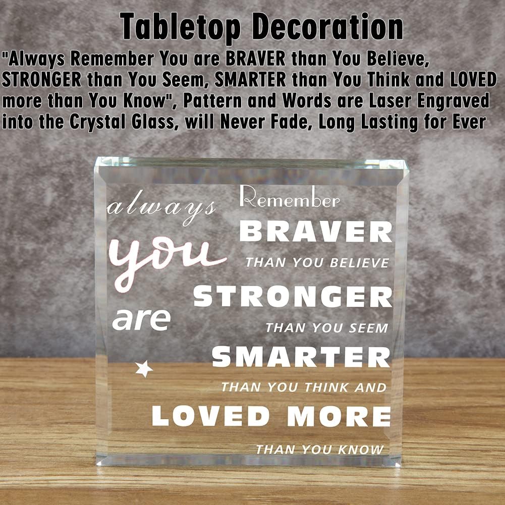 Unique Design Read: “Always Remember You are BRAVER than You Believe, STRONGER than You Seem, SMARTER than You Think and LOVED more than You Know”, Pattern and Words are Laser Engraved into the Crystal Glass, will Never Fade, Long Lasting for Ever