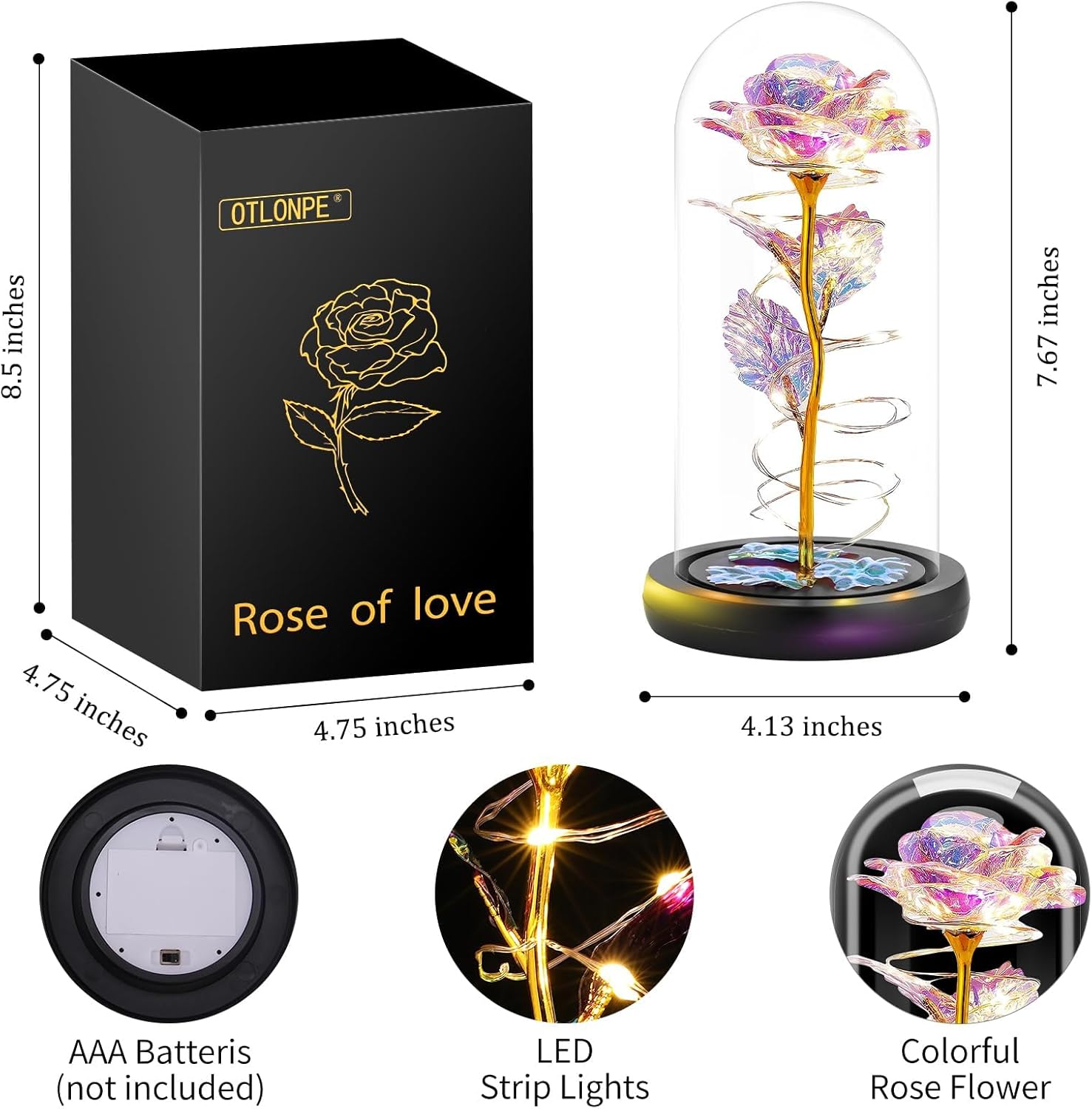 Otlonpe Glass Rose Flower – Christmas, Birthday Gifts for Women Mom Wife Girlfriend Her – Handmade Led Light Up Roses Flowers Womens Gifts for Christmas, Anniversary, Wedding, Valentines, Mothers Day