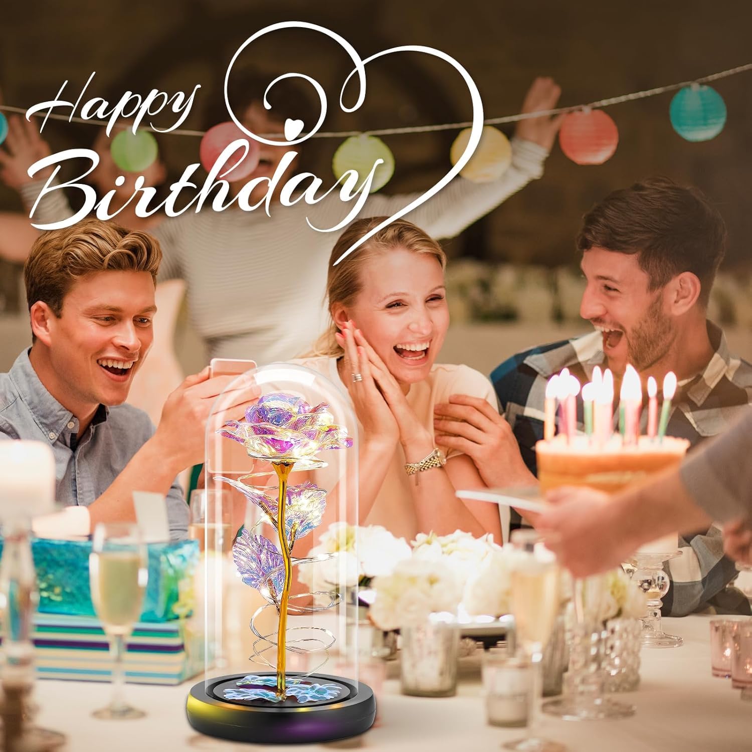 gifts for hergifts for her Turn on and Turn off Adjustable Colorful Rose In Glass with Led