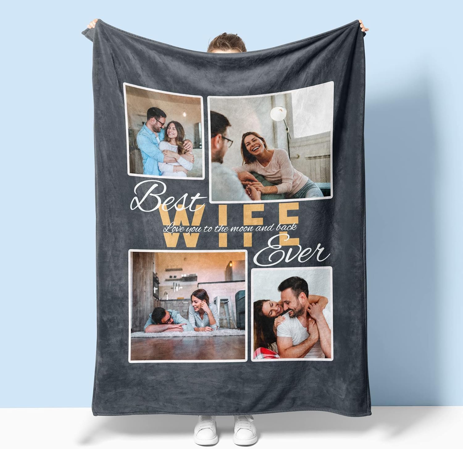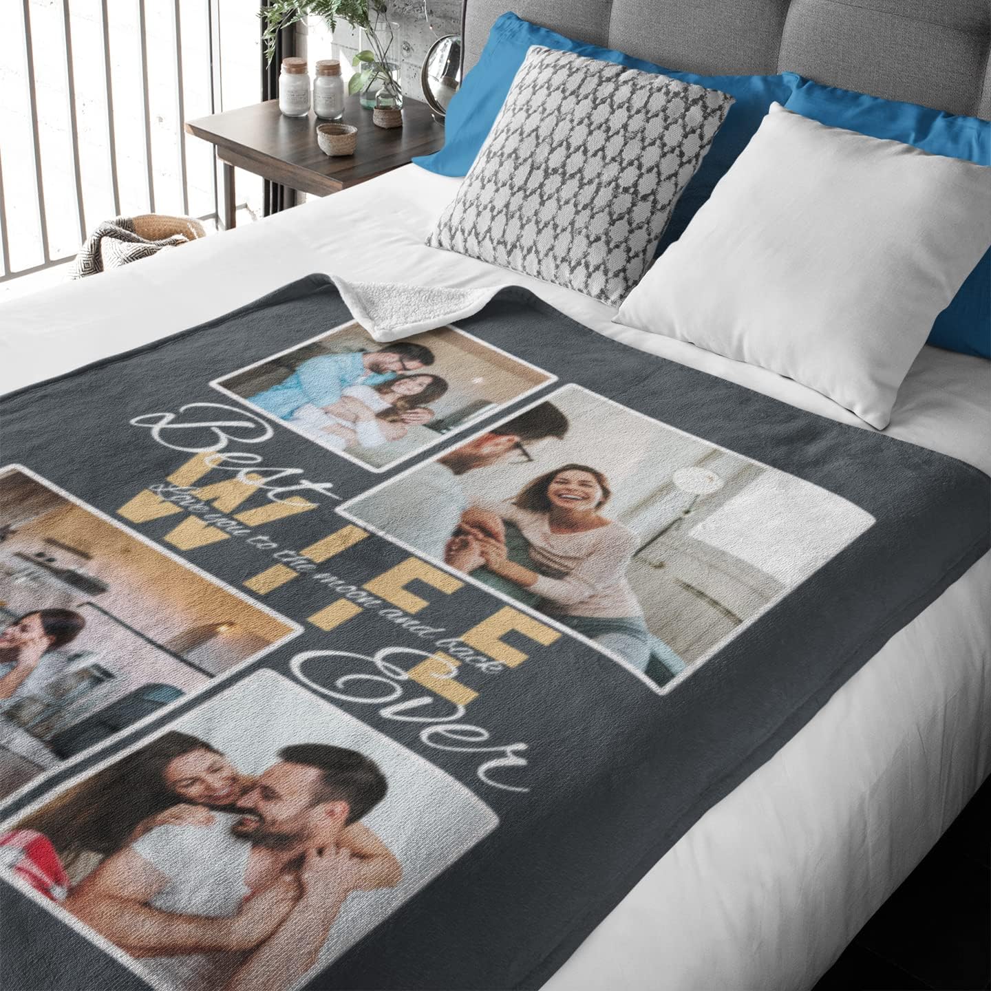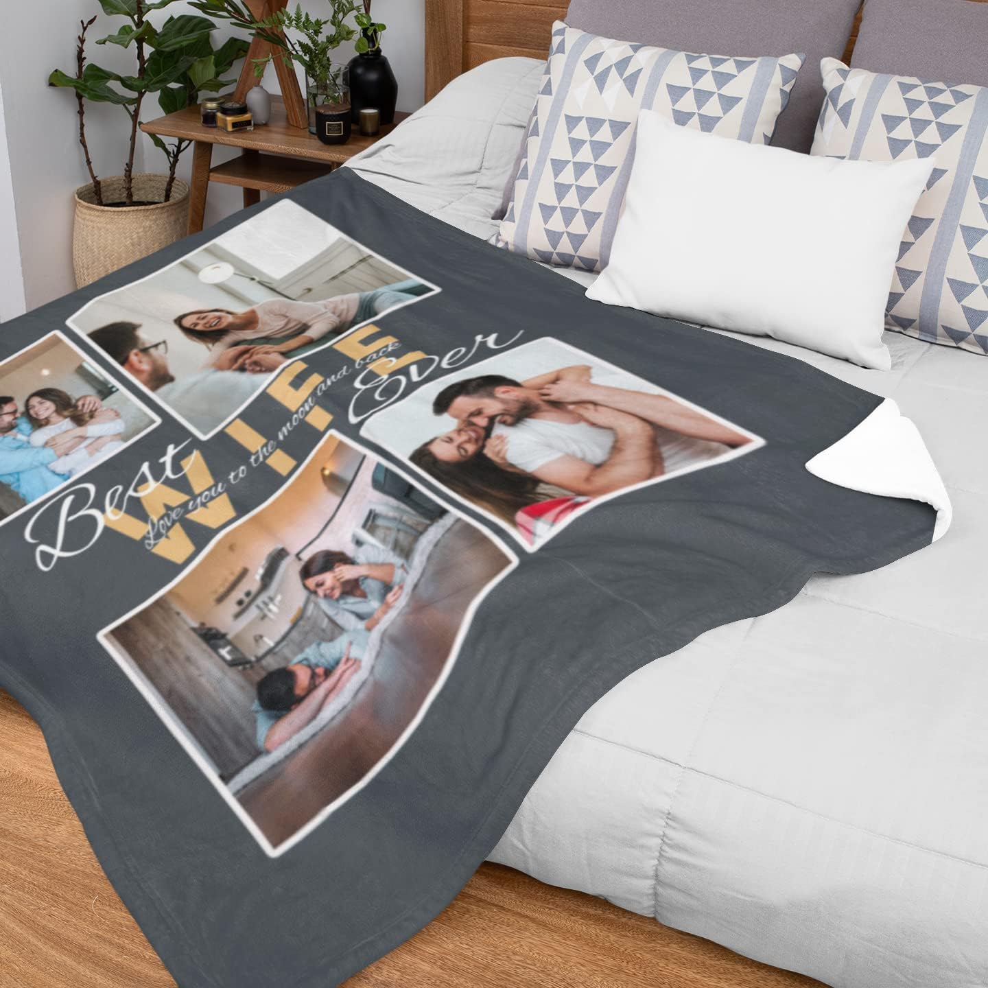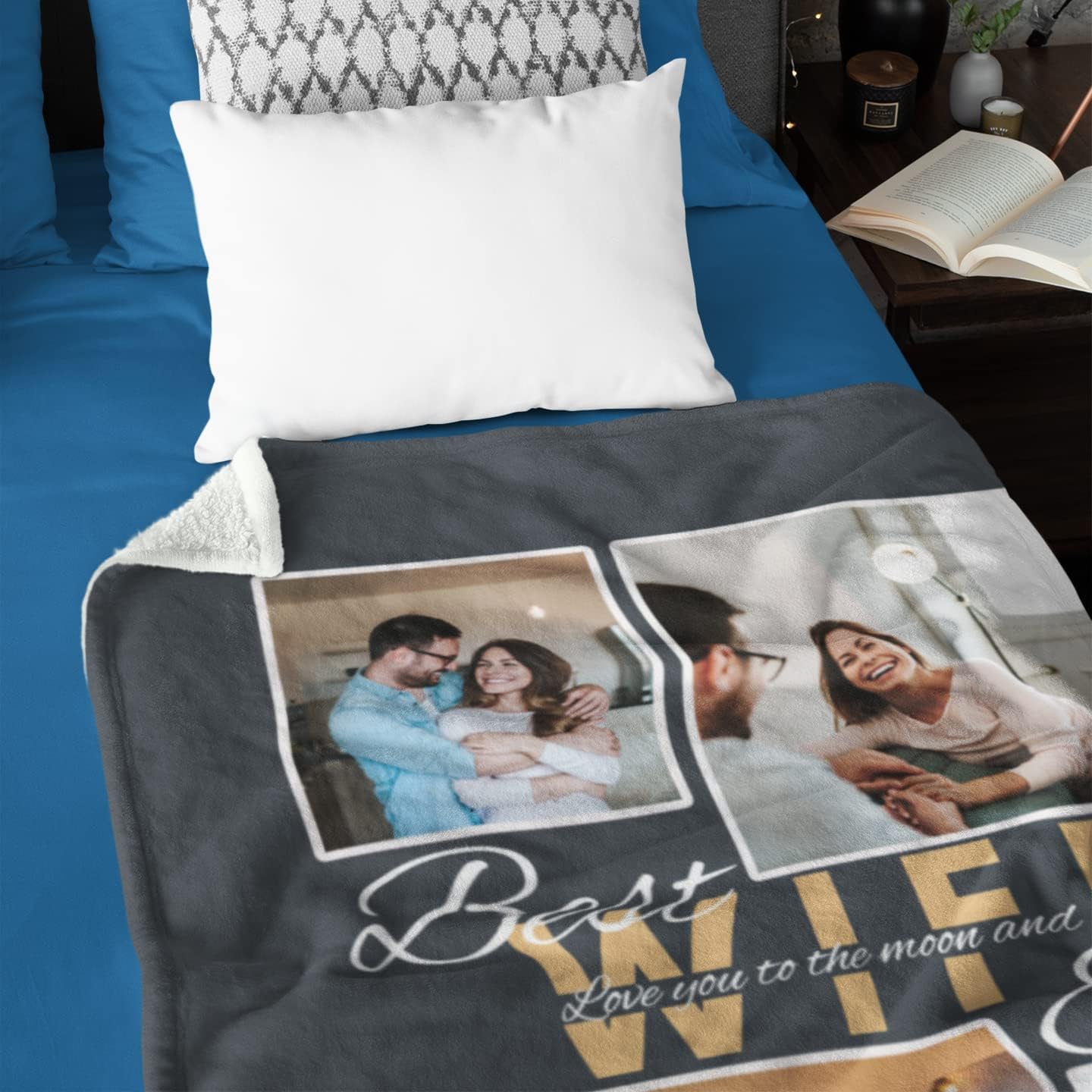 Personalized Photo Blanket for Wife, Custom Collage Blanket Gift for Spouse, Customized Fleece or Sherpa Throw, Unique Idea, Great Romantic Birthday Present, Sherpa6080…