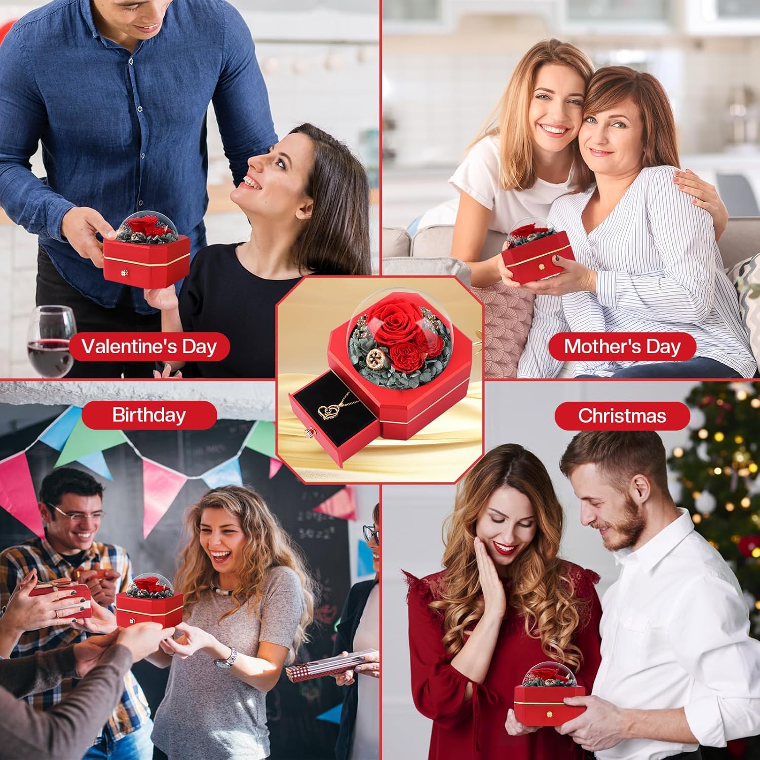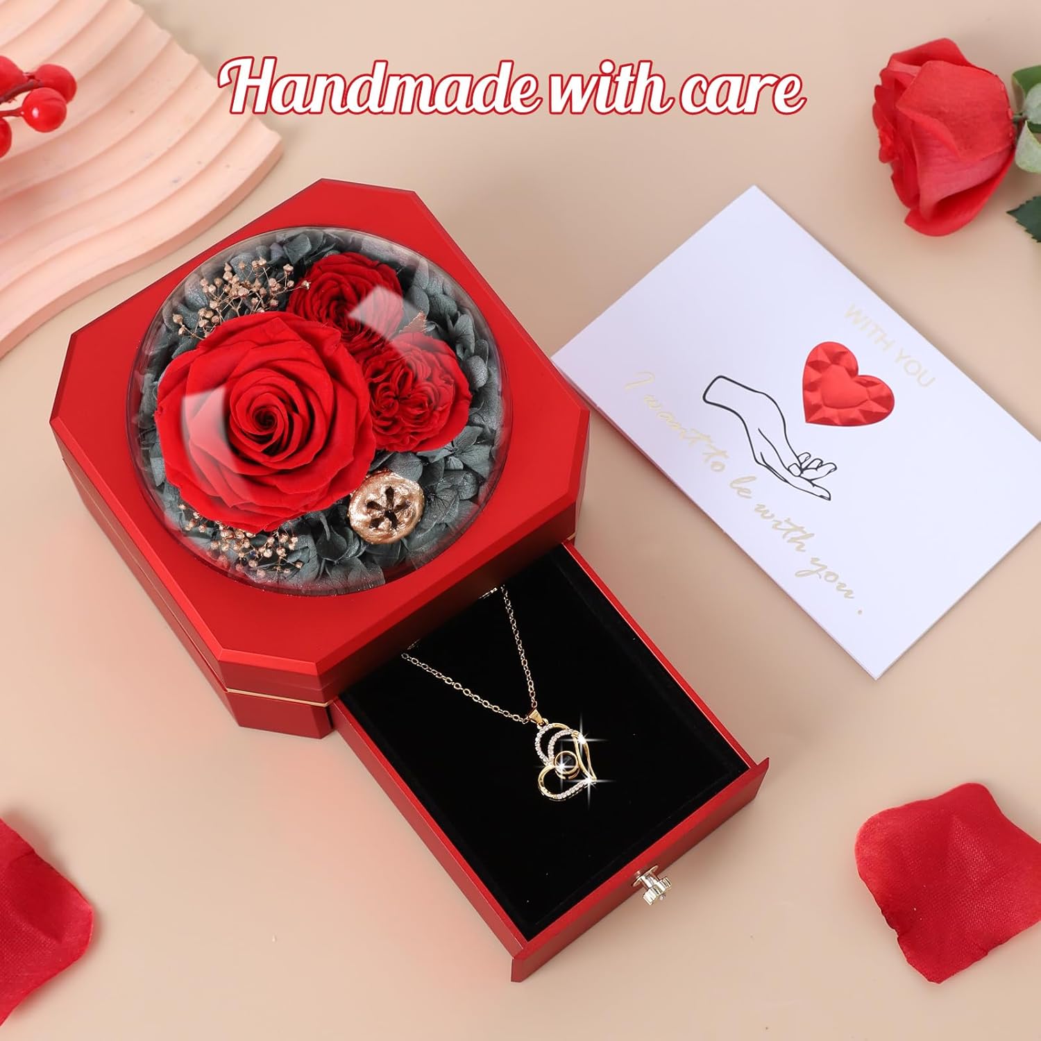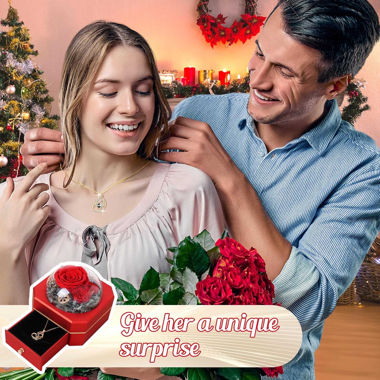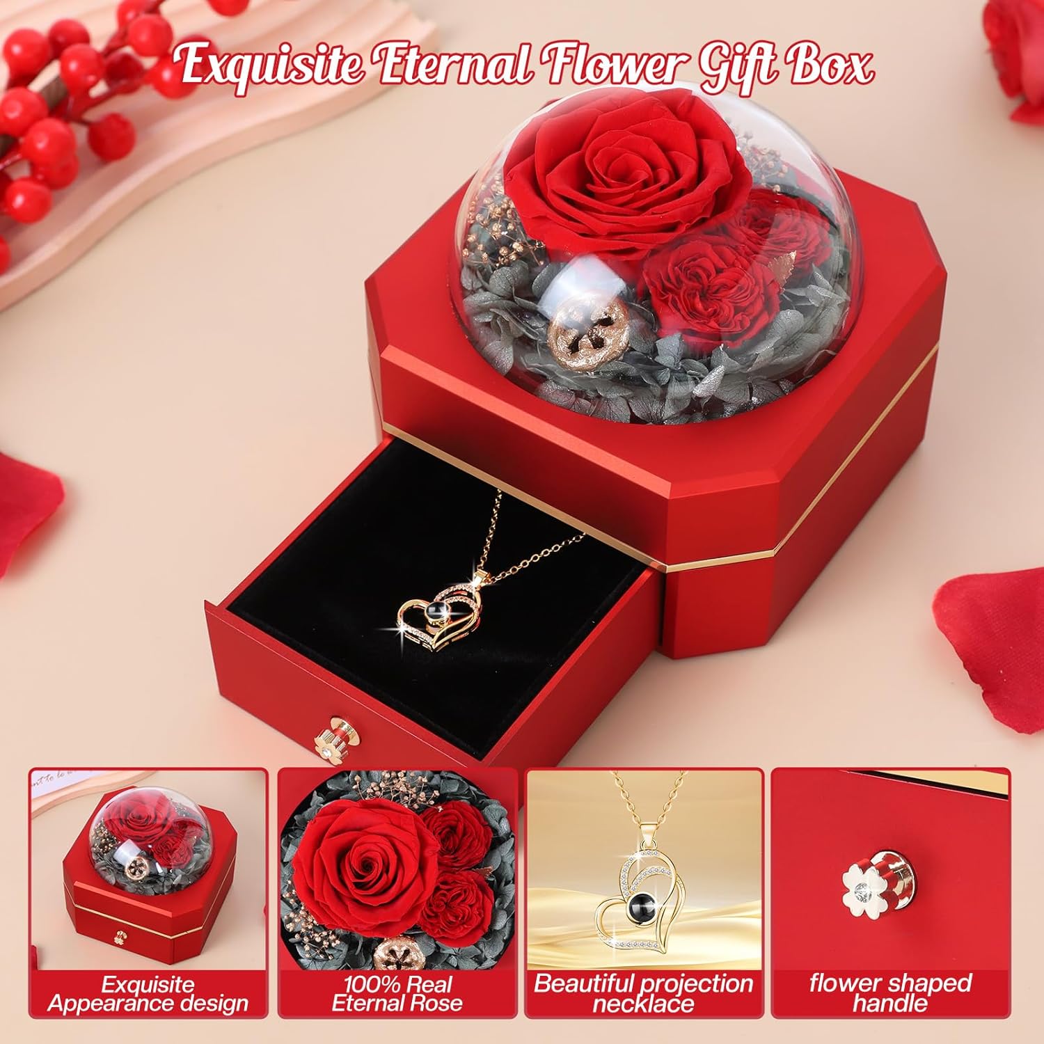 Preserved Real Rose Gifts for Women Mom Wife,Eternal Flowers Rose with I Love You Necklace in 100 Languages,Gifts for her on Christmas Birthday Anniversary Valentine’s Day Mother’s Day (Red)