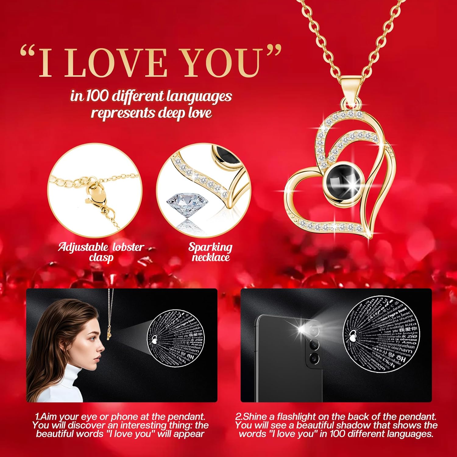 Necklace with 100 I Love You Languages-The angel necklace in the drawer box was engraved with I Love You in 100 languages. which means there are 100 love ways. As an exquisite luxury gifts, it can also store other jewelry or rings